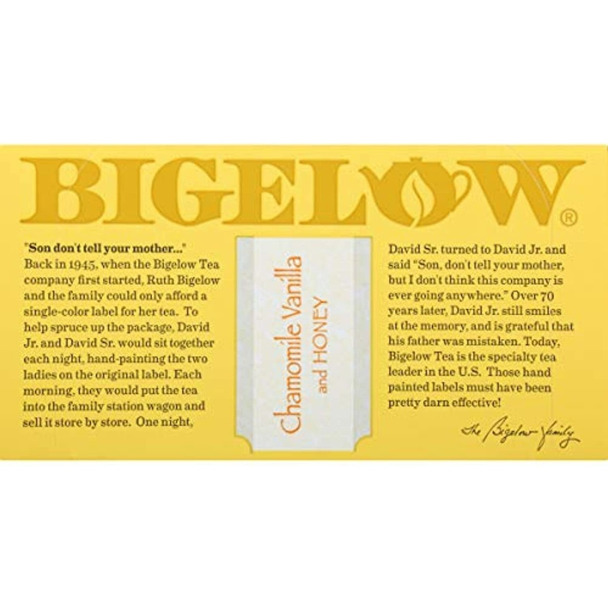 - Absence de caféine : Le thé Bigelow Chamomile Vanilla est une tisane sans caféine, ce qui la rend appropriée pour être consommée avant de se coucher sans perturber le sommeil.Â